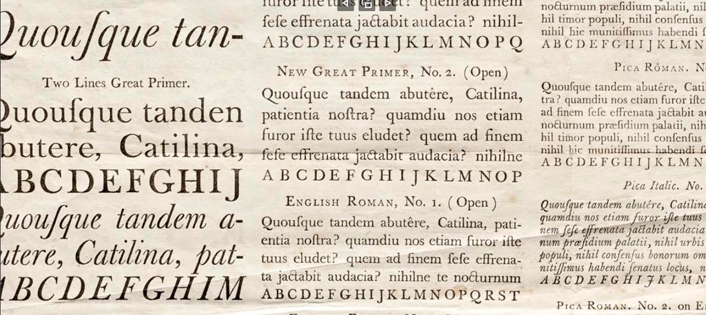 A Specimen of Printing Types, Joseph Fry & Sons, London (1785). See on Letterform Archive.