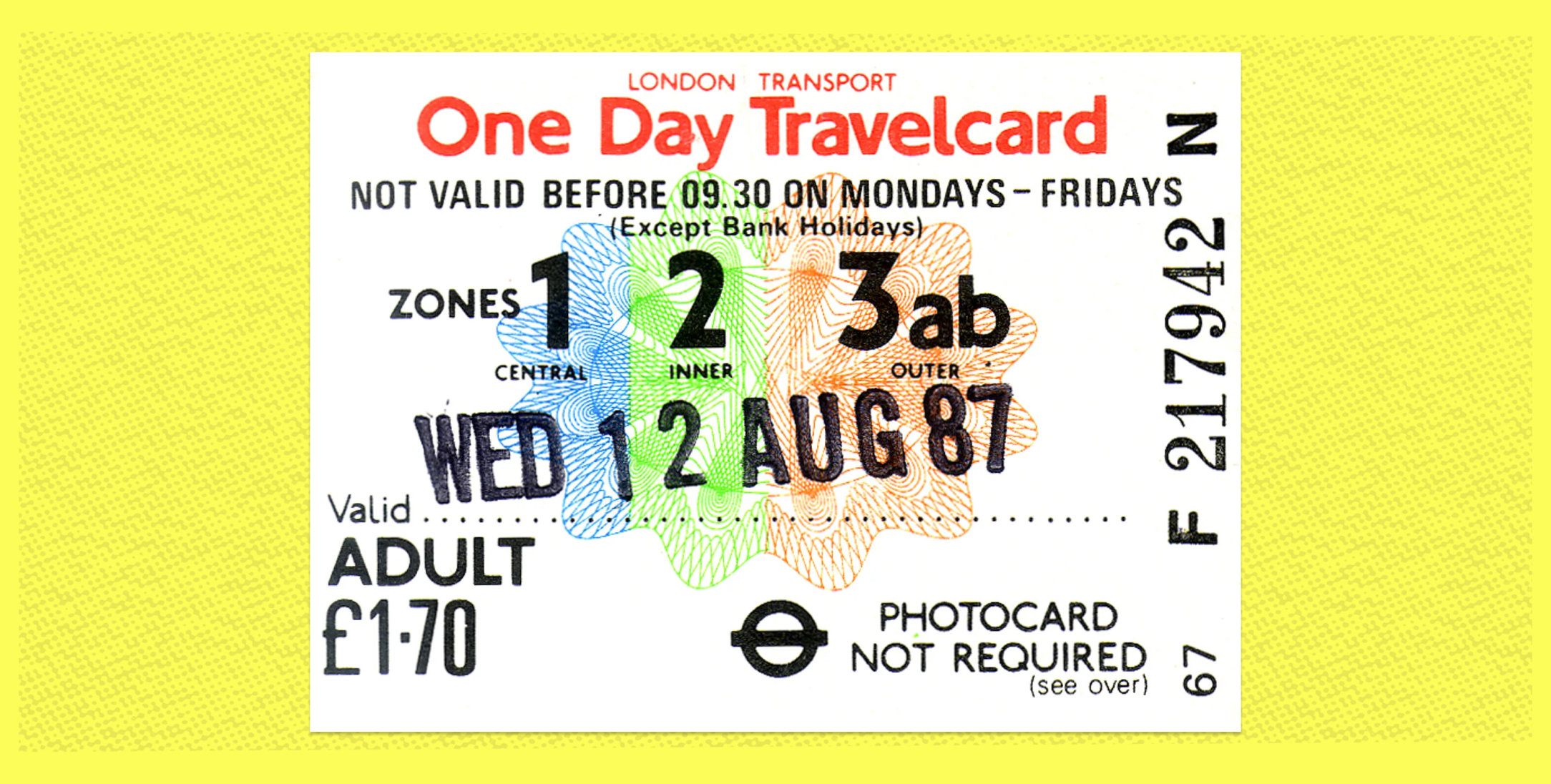 My third choice would be a London Transport travel card from 1987. Mainly, if truth be told, because I find it pleasing. But also because someone took a lot of trouble to design and print this ‘transient minor document of everyday life’ (to borrow Maurice Rickard’s definition of printed ephemera). The typography is lively but easy-going despite the density of information. The London Transport red is a familiar companion while the three-colour imitation of security engraving lends a bit of fantasy to brighten up what might otherwise be an uneventful commute and tempts you to keep it as a bookmark. And the cherry on the cake―for a printing historian at least―is that it is printed in five colours with additional numbering and a manually applied date stamp. A well-designed public transport ticket is worth its weight in gold and to my mind this one is up there with the best and deserves the place it occupies in the collections of the Museum of Printing which in 2014 added Graphic Communication to its name.