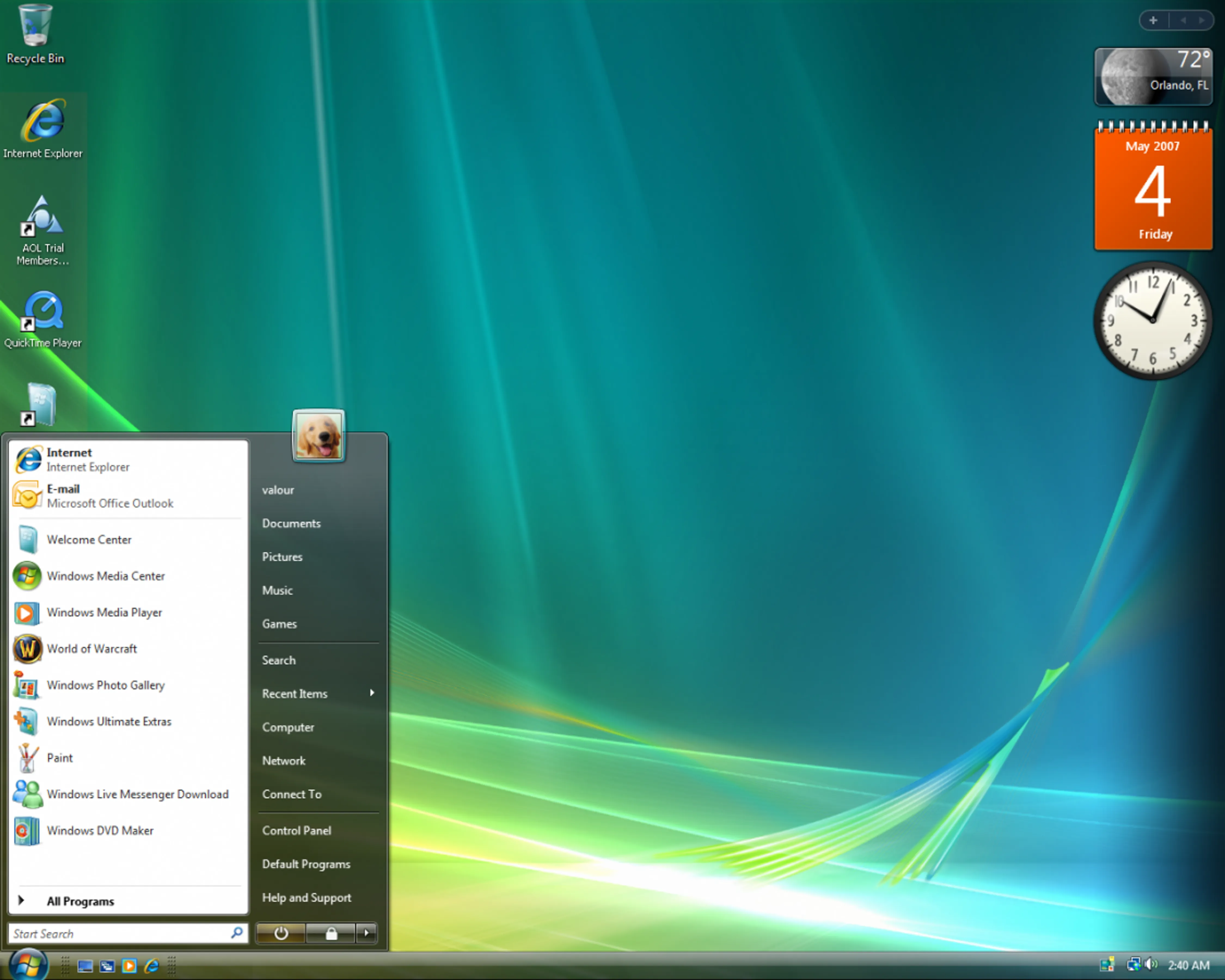Windows Vista interface from 2006 with glass opaque style