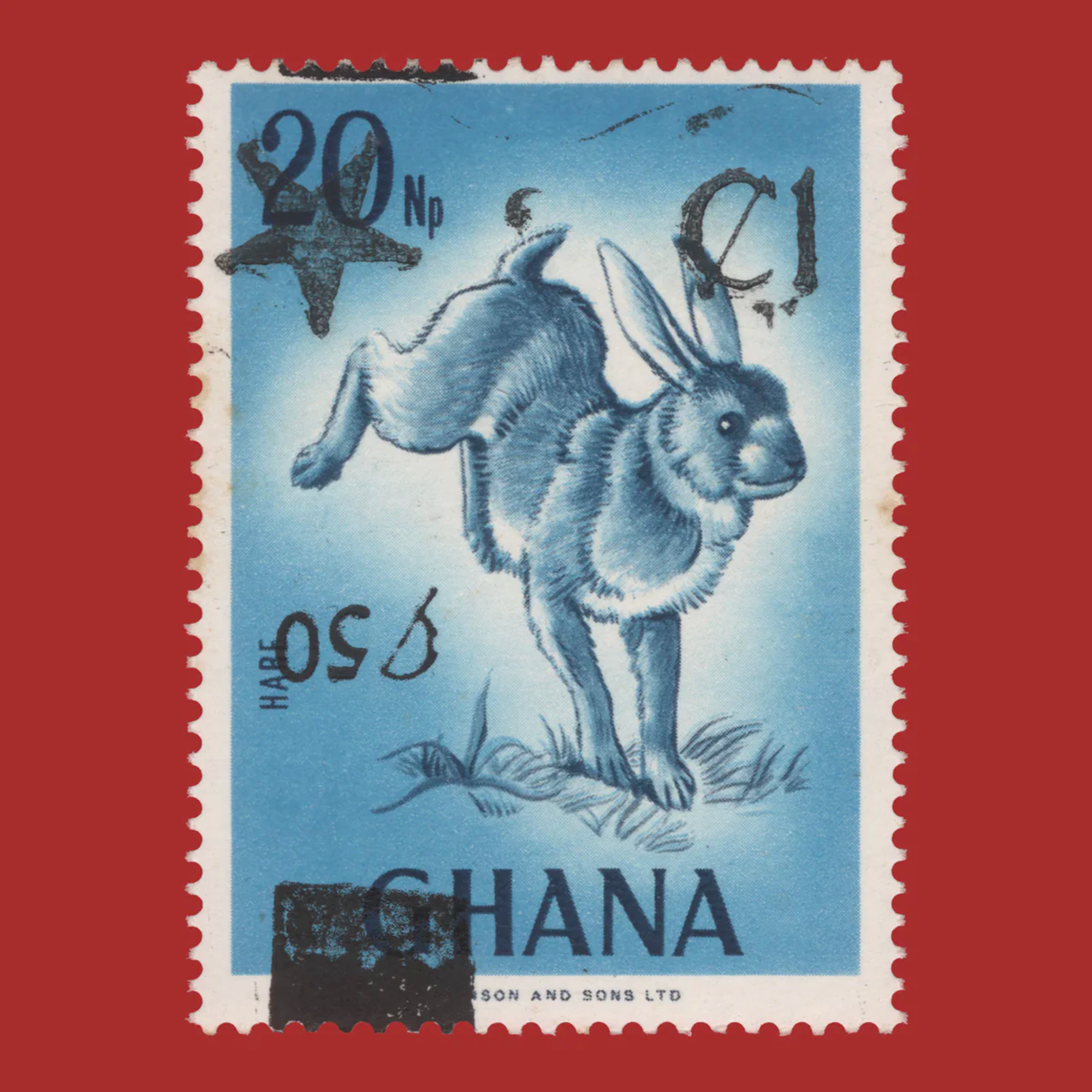 One Cedi is divided into one hundred Pesewas. Thus, in other places, the stamps are valued in Ghanian Cedi (₵). On further philatelic research, I found the same stamps from my grandfather's collection with an additional ‘₵50’ stamped on them. The stamp has been graphically adapted to have a surcharge (an additional marking or overprint) as a response to inflationary pressures. Instead of printing new stamps with updated denominations, existing stamps can be overprinted with a new value to reflect changes in postal rates or currency devaluation — making them distinct from the standard issue.
