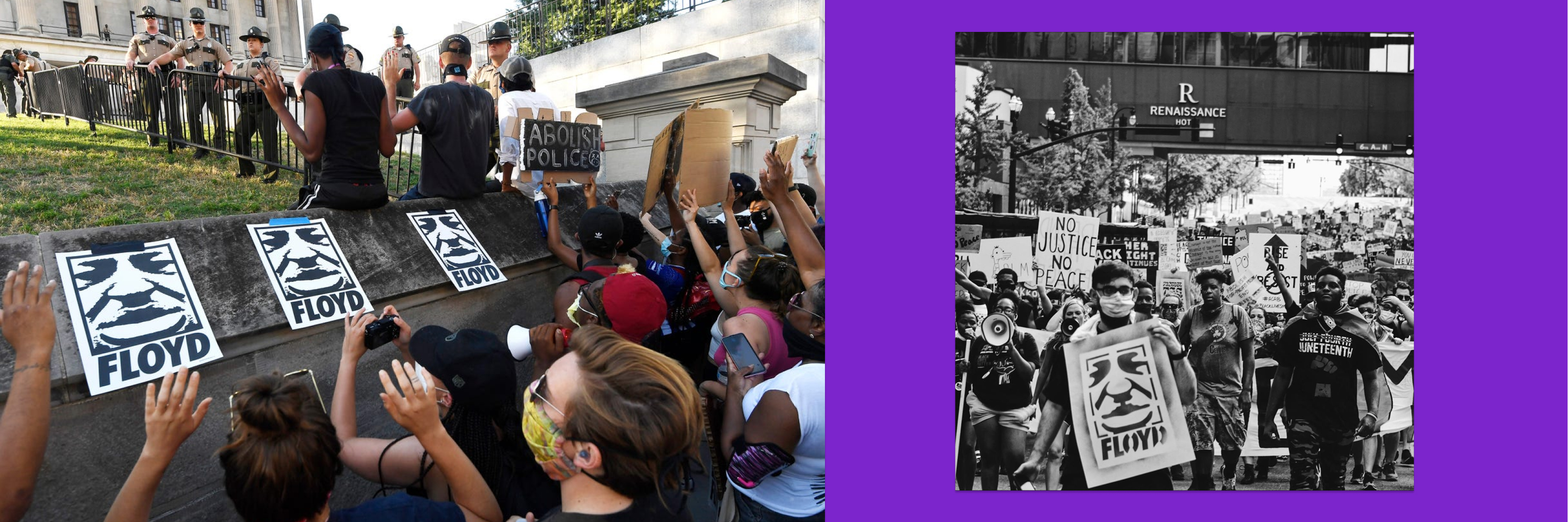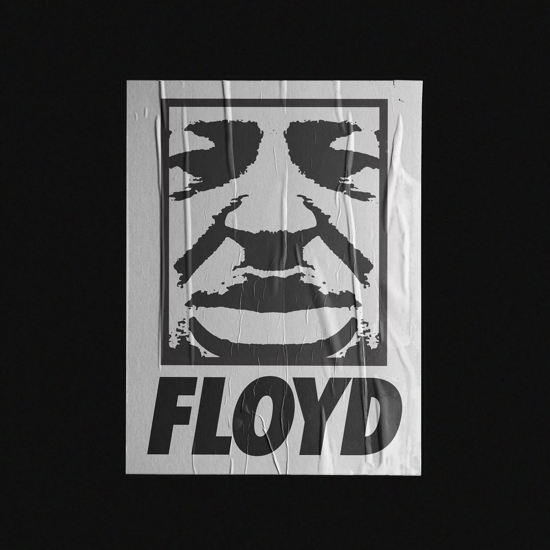 One of my designs superimposed the face of George Floyd and featured the word “Floyd” below it in the iconic Futura Italic typeface often used in early ad campaigns by Nike, a company deeply rooted in our culture through its connection with Michael Jordan. The poster was also a nod to Shepard Fairey’s Obey campaign, of which there are a few pieces in The Archive. The Floyd becomes a powerful cultural statement layered with symbolism and intention. Conveying an unignorable presence, transforming Floyds image into an icon of resistance and remembrance. Through these design decisions, this poster becomes more than a visual, it serves as a modern cultural artifact, using the language of graphic design to communicate resilience, solidarity, and the enduring fight for justice within and beyond the Black community.