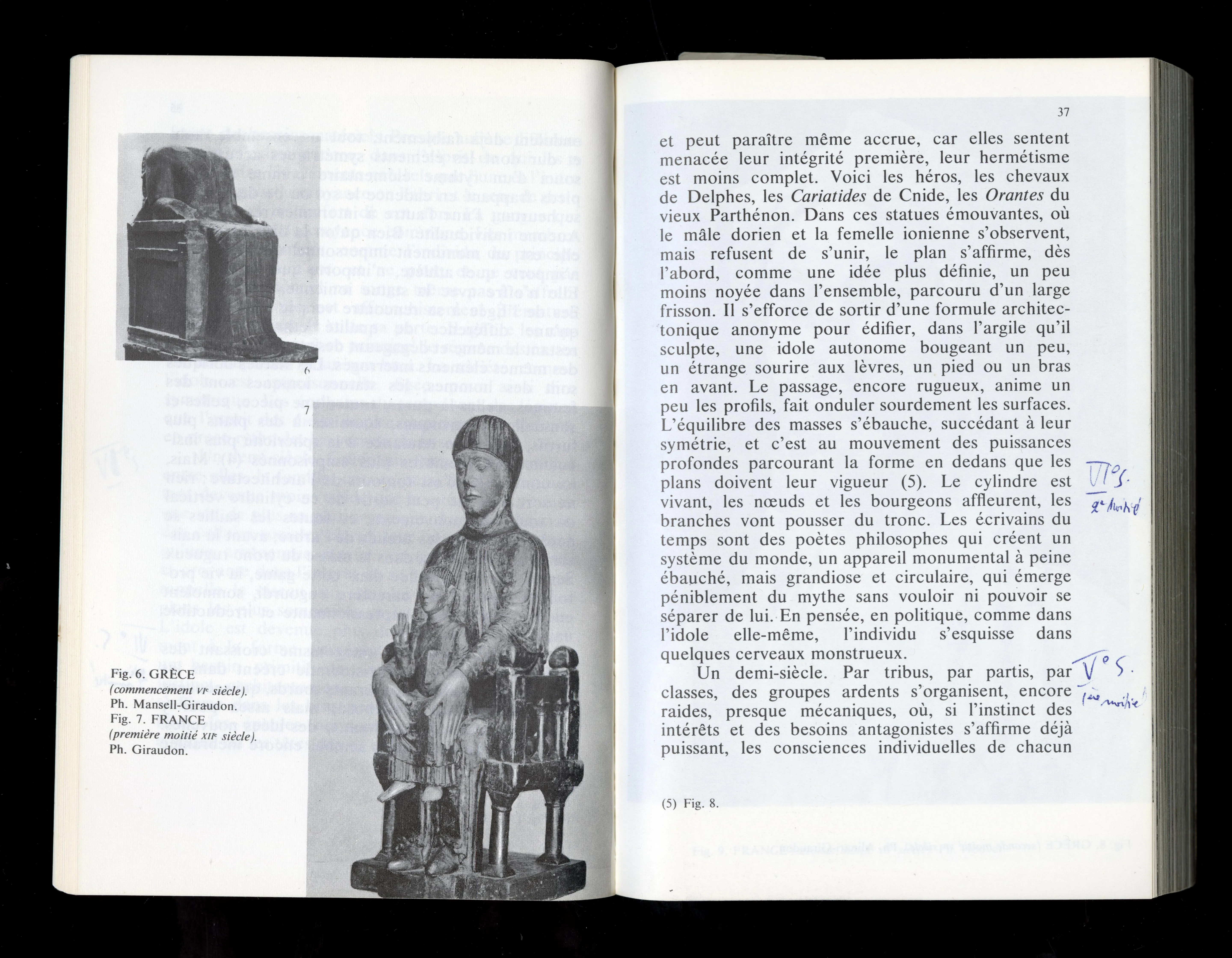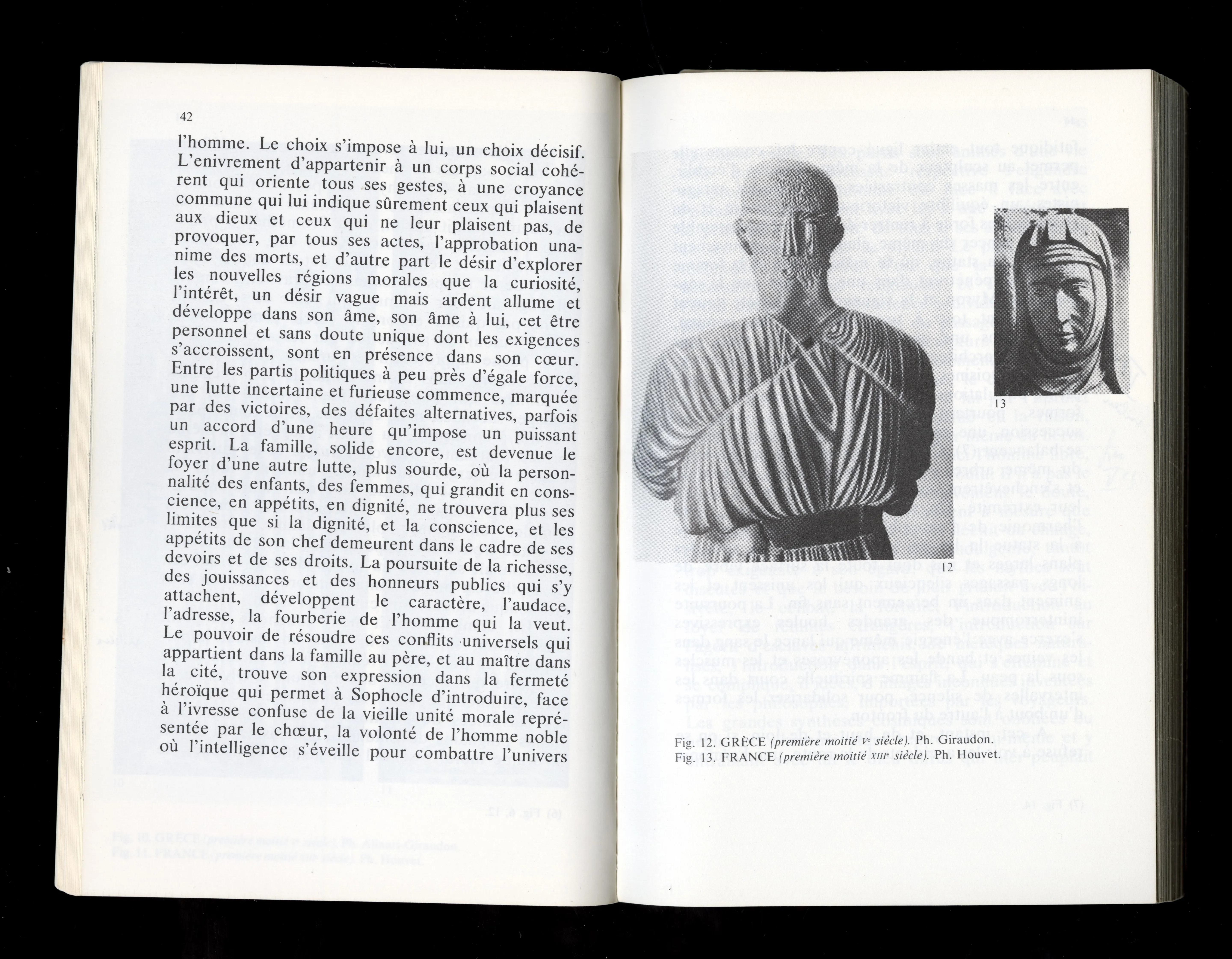 Around the same time, she was invited to design the interior layout for the collection “Art” by the publishing house Livres de Poche, while the studio of Pierre Fauchaux designed the covers. Despite having a mostly conventional layout, Fricker brings dynamism to the pages with the position of the images on the spread, where images are usually unaligned with the text box.